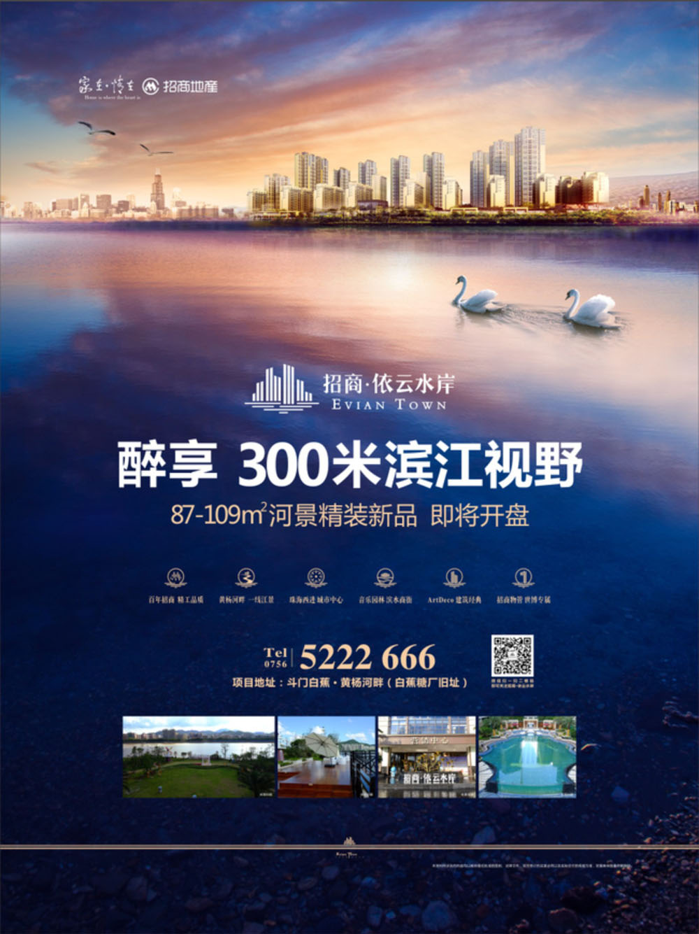 招商·依云水岸,位于珠海市斗门区白蕉镇黄杨河东侧,占据西部中心城区核心地段,踞守“一河两岸”显要位置,在这片承载了斗门几代人情感的土地上,招商地产致力打造西区首席滨水豪宅,倡导“公园为邻·水岸为家”的健康生活方式。