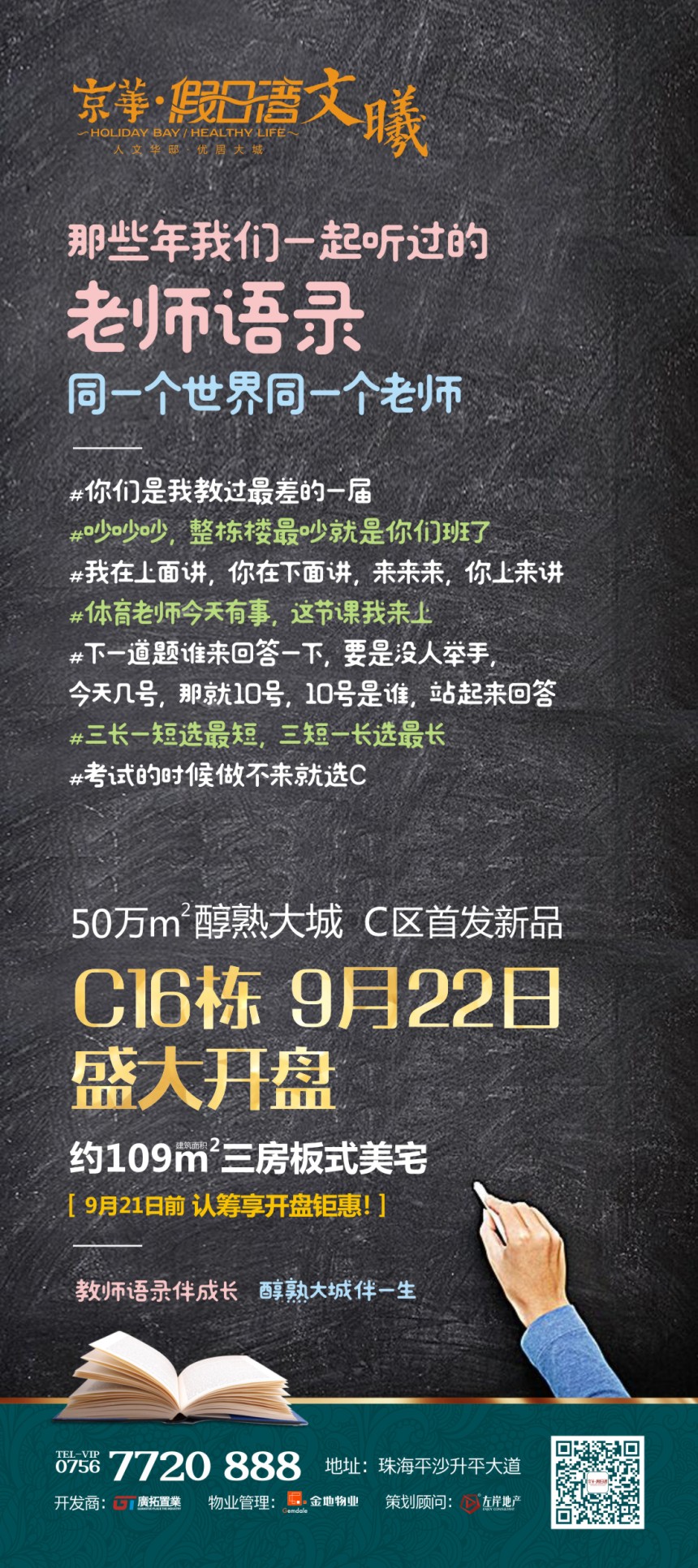 平沙,被誉为高栏港人居后花园,是珠海西部生态新区建设的重要部分,也是高栏港区实施“港业城”一体化发展战略的关键阵地,未来将建设成为集文化旅游、高品质居住为一体的具有滨海田园特色的温泉新城。京华假日湾位于平沙老城片区的核心位置,周边钰海国际广场(含现代化肉菜市场)、台湾风情街、珠海市第五人民医院及幼、小、初、高学校近在咫尺,区位优越,未来潜力不可限量!