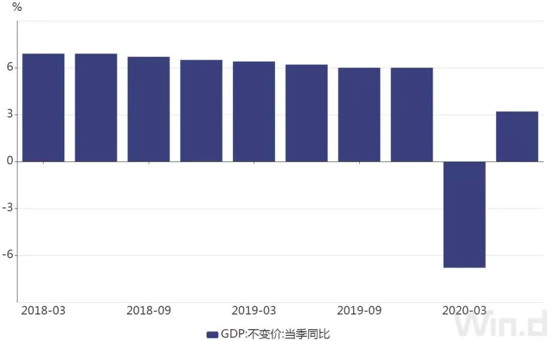 ▲2020年二季度,中国GDP迅速转正实现同比增长3.2%